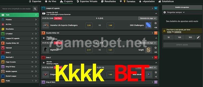 O Kkkk Bet oferece uma grande seleção de opções de apostas em e-sports com probabilidades competitivas
